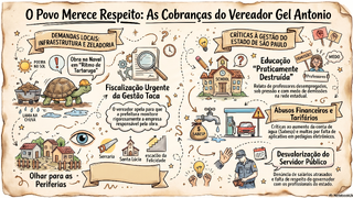O vereador Gel Antonio voltou a cobrar maior rigor nas obras e serviços de zeladoria na cidade, especialmente na região da Naval. “Vai falando aqui toda quinta-feira e às vezes vira repetitivo, mas não é repetição, é a verdade”, afirmou. Segundo ele, a obra na Naval anda no ritmo de uma tartaruga, causando transtornos à população local.